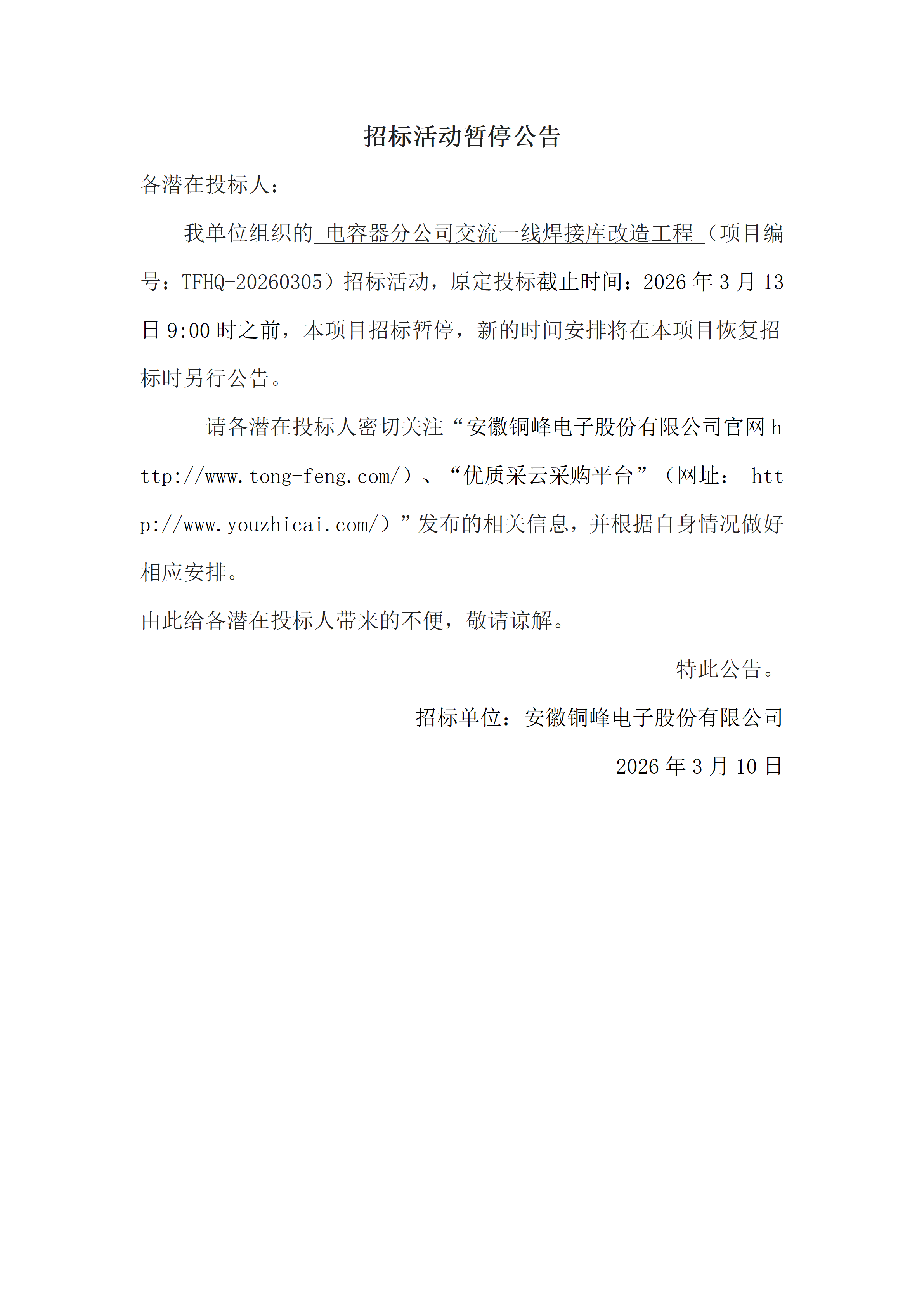 招標(biāo)活動(dòng)暫停公告(項(xiàng)目編號(hào):TFHQ-20260305)_01